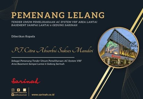 Pengumuman Tender Umum Pemeliharaan AC System VRF Area Lantai Basement Sampai Lantai 6 Gedung Sarinah
