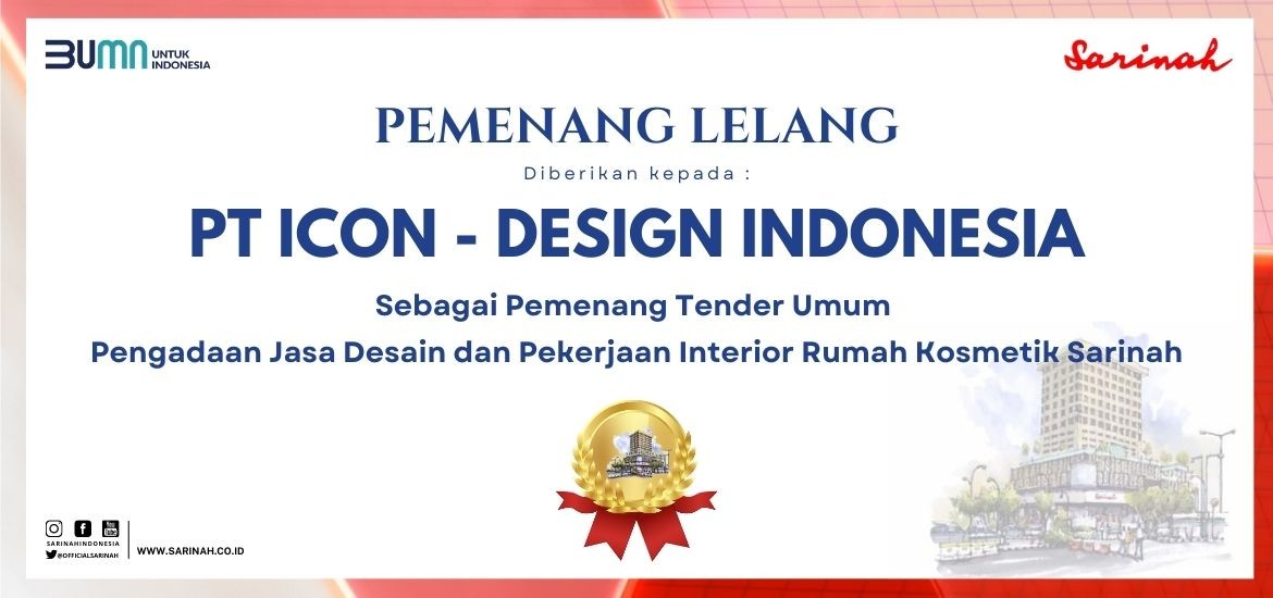 Pengumuman Pemenang Tender Umum Pengadaan Jasa Desain dan Pekerjaan Interior Rumah Kosmetik Sarinah