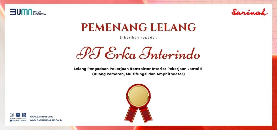Pengumuman Pemenang Lelang Pengadaan Pekerjaan Kontraktor Interior Pekerjaan Lantai 5 (Ruang Pameran, Multifungsi dan Amphitheater)