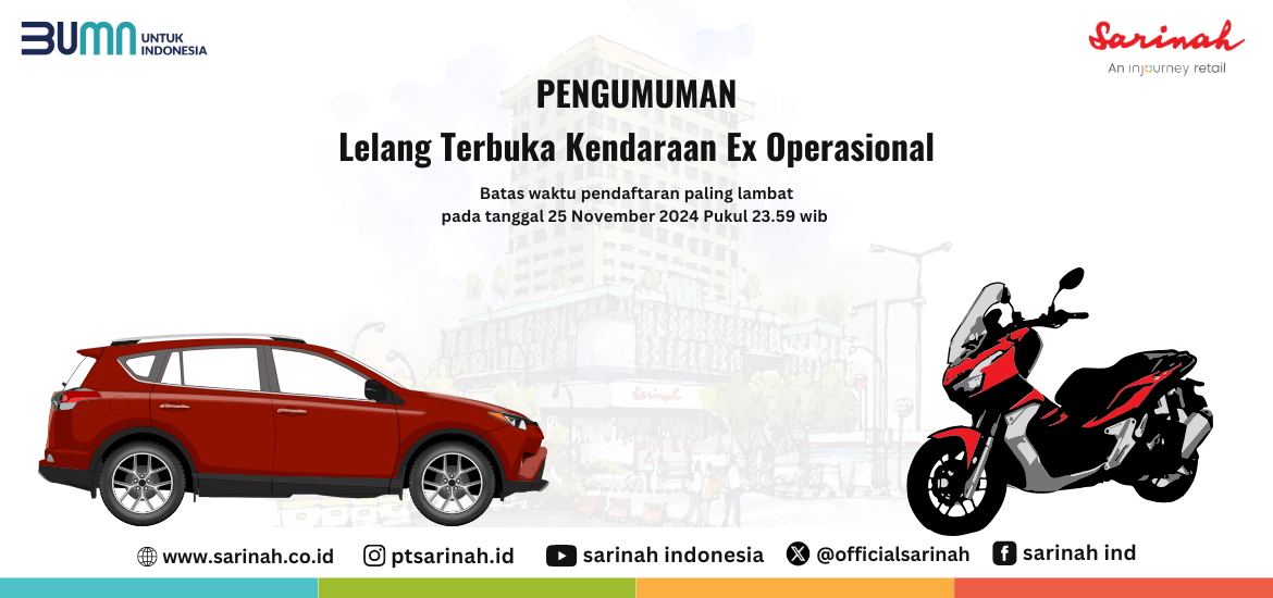 Lelang ini bersifat terbuka untuk 1 unit mobil dan 1 unit sepeda motor ex operasional.