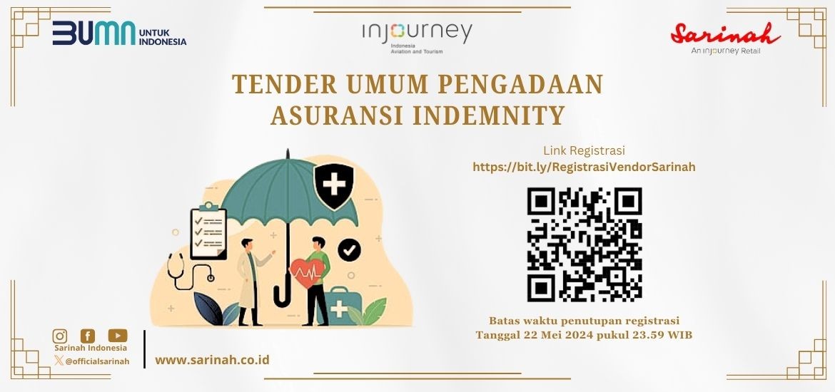 1. Jika Berminat dapat mengirimkan surat penyataan dengan judul “Surat Pernyataan Minat Mengikuti Pengadaan Asuransi Kesehatan Indemnity ke procurement@sarinah.co.id paling lambat pada tanggal 22 Mei 2024 Pukul 23.59 wib